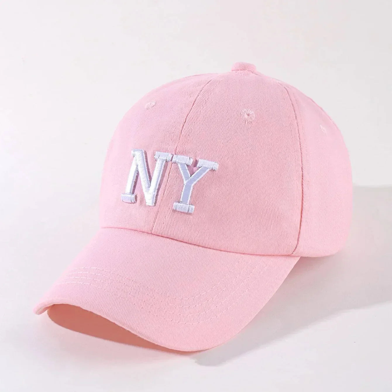Trendy unisex baseball cap with solid colors and embroidered NY design. Lightweight and adjustable for a perfect fit.